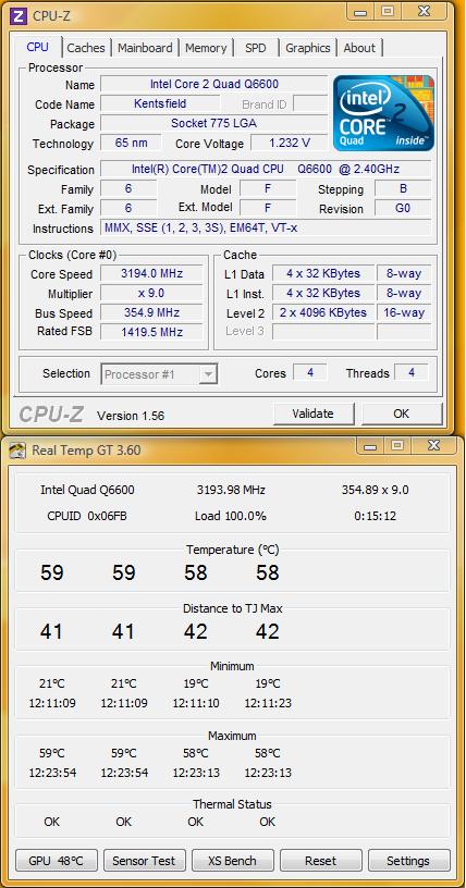 Upped my FSB to 333 which wouldn't post as the ram had scaled up, so dropped that back down to 800 and got into Windows fine. Did 2 hours prime to check temps/stability and once I was happy that I could get a bit more out of it, just whacked the FSB up to 355 which didn't post again so had to lower the DRAM freq to 711 and got in. Just coming up on my 23rd hour of prime95 with no problems.