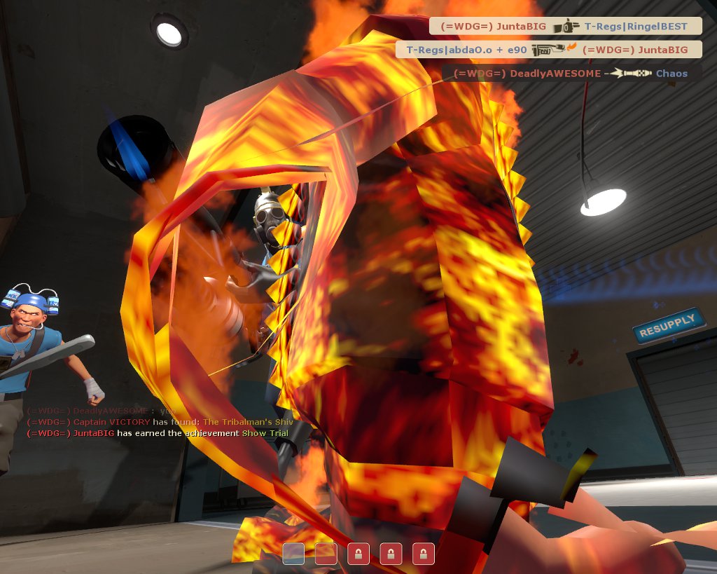 I know you're supposed to taunt and take a screenie.. but I was in the thick of it and wanted MORE AWSOME! 3 in a row.. 1 heavy, 1 demo, 1 medic.. I had a kritz   sorry for massive image.. cba to resize Is that Minecraft?