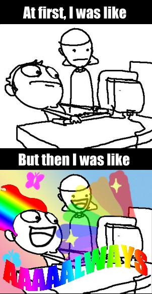 Mrs the Cat sent me this and now I can't stop playing Don't be hatin on the song http://games.adultswim.com/robot-unicorn-attack-twitchy-online-game.htmlGo forth and huge my friends