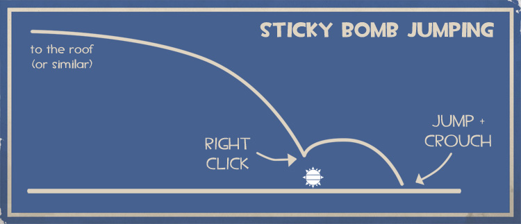 If you read that image like any sane person would read it you would think that it implied that you should jump from a tall roof (or similar) and land on your stiky and then detonate it to land safely to do a crouch jump.